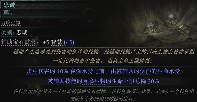 恐喙鳥中後期的作用主要就是騎乘,輔助技能石優先級最高的當屬忠誠,剩下有條件安排肉盾II、元素大軍、召喚生物專精和亡命之息。