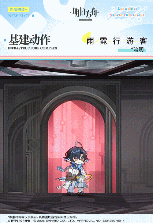 有点意思,霓行5个字还搞了个艺术字。背景上面有深海队的斯卡蒂,下方有安泽拉的触手之类的。