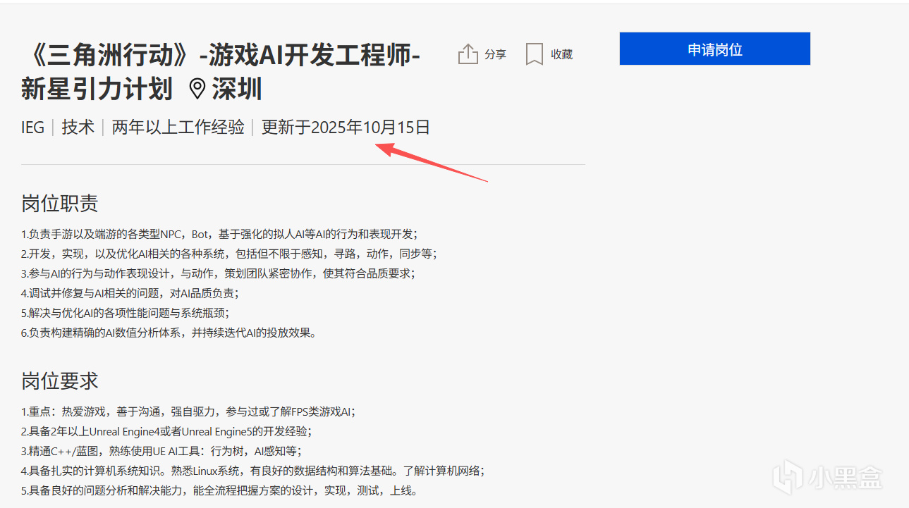 不过一个“游戏AI开发工程师”的岗位引起了我的注意,内容是“负责手游以及端游的各类型NPC,BOT,基于强化的拟人 AI 等 AI 的行为和表现开发”,看来《三角洲》官方真的要开始着手调整游戏中的超雄人机了!