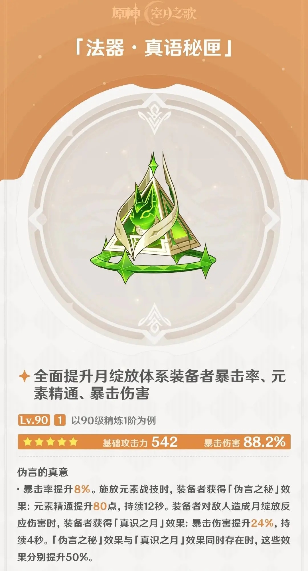 提供了直伤月绽放体系需要的暴击、精通、爆伤