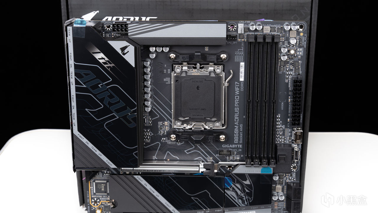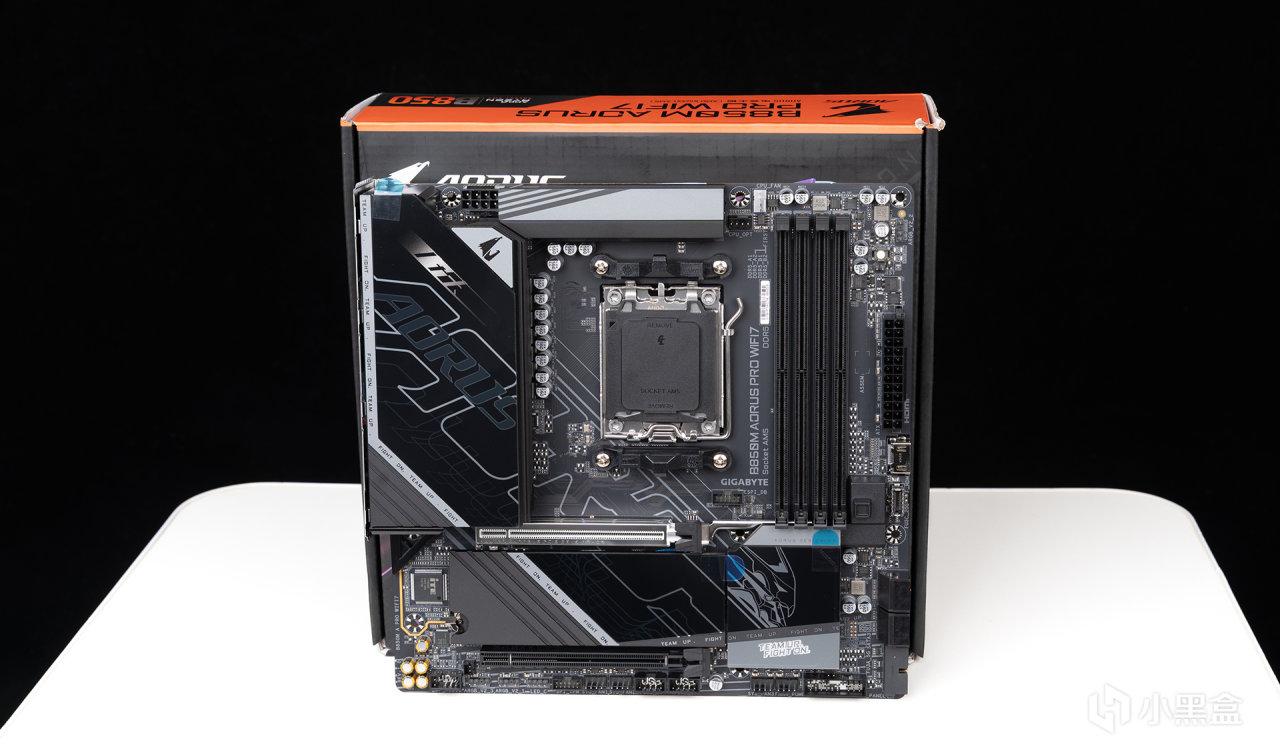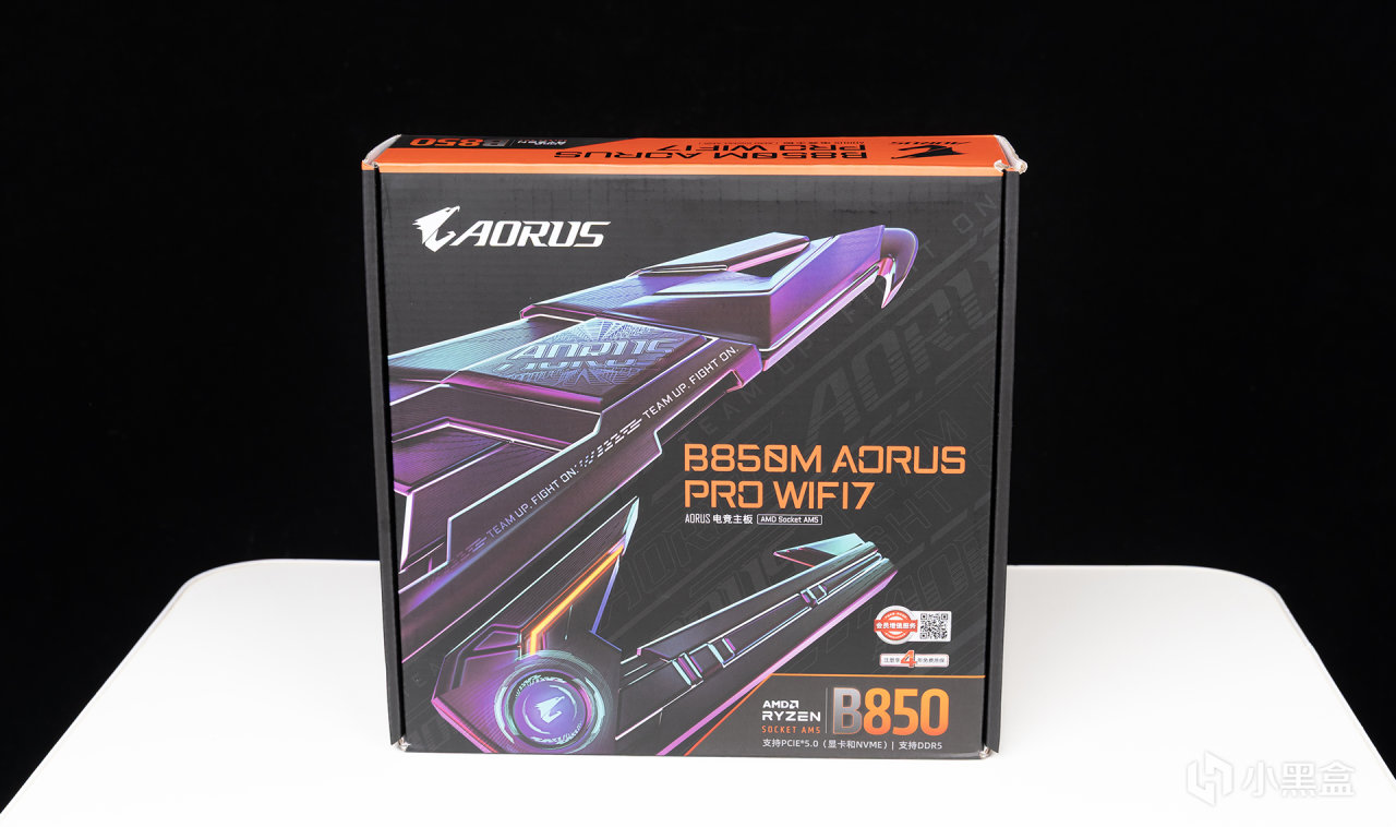 B850M電競雕包裝沿用了AORUS系列經典的金屬大雕頭風格,右下方特別標註享4年全國質保,相比大多數板廠來說,技嘉擁有多1年的售後保障。
