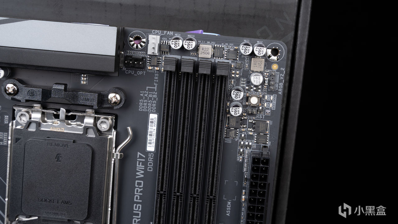 優質的供電設計是B850M電競雕的一大賣點,在一體成型、提供4倍散熱面積和內置熱管的Epic VRM散熱裝甲之下,主板採用了12(CPU)+2(核顯)+2(輔助)相供電規格,其中服務於CPU和核顯部分的Dr.MOS均爲80A,能完美勝任Ryzen 9000旗艦級的同時,也爲性能超頻提供最大保障。