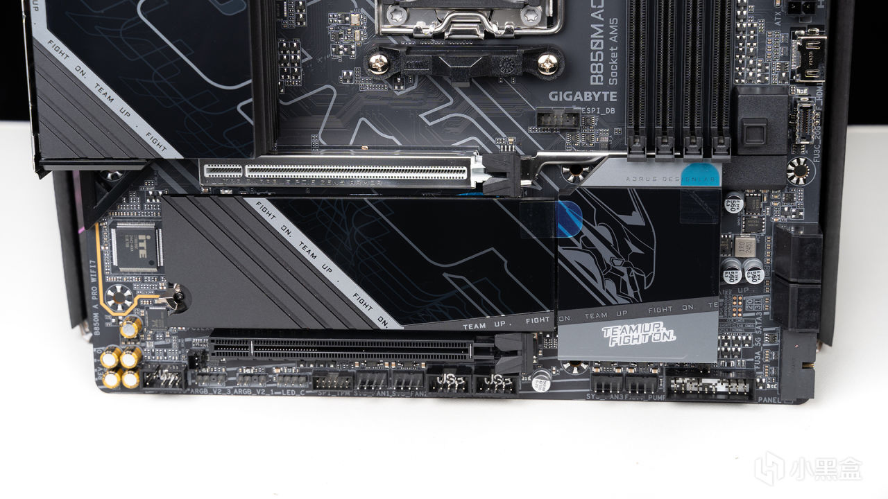 B850M電競雕擁有兩組M.2插槽,均支持到PCIE 5.0X4,存儲擴展是妥妥戰未來!同時,M.2插槽也是統一的快易拆設計,從拆裝甲到安裝SSD全程都是免工具進行,相當友好的DIY體驗~