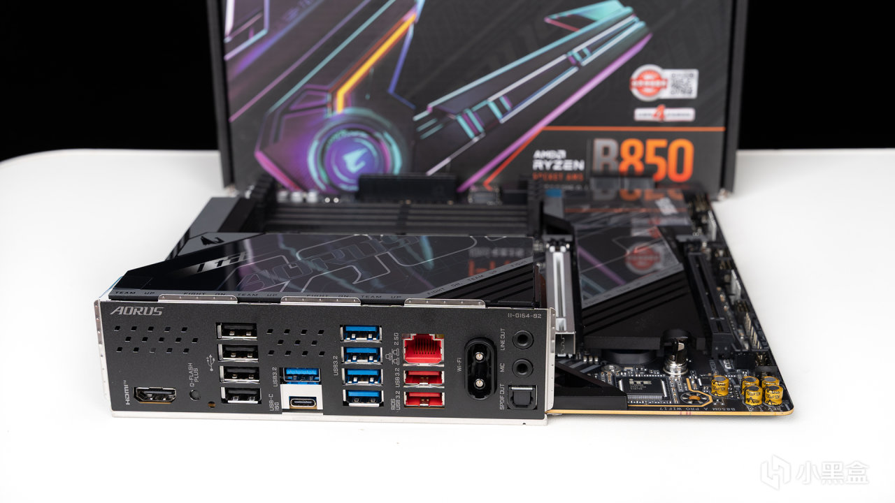 主板後置I/O是一體式擋板,比較特別的是技嘉還在擋板上設計了一些通風孔,標稱可降溫7℃,具體效果怎麼樣我們直接下方的烤機測試見。
