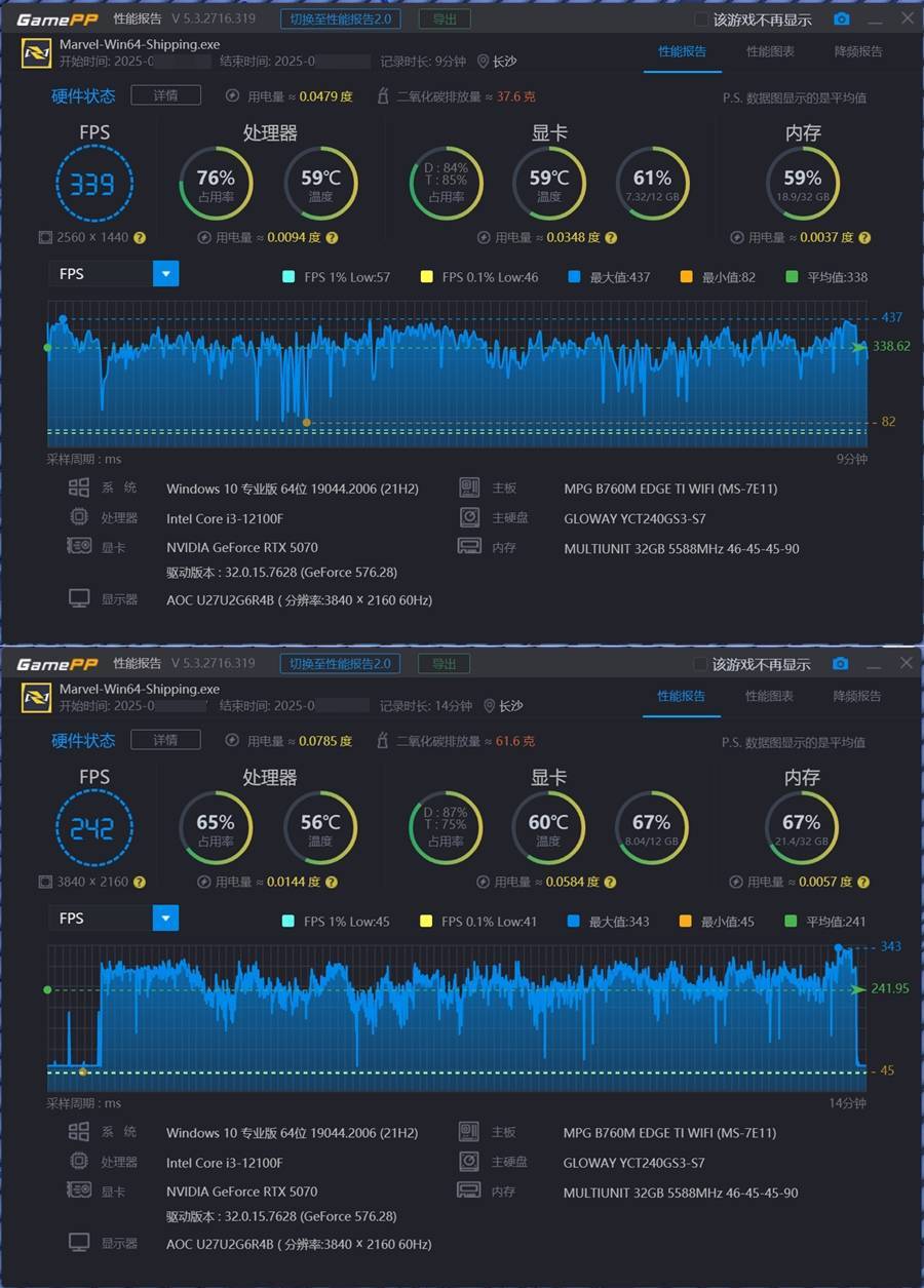 2K(2560x1440)分辨率下,《漫威争锋》平均帧数达到 339 FPS,1% LOW帧 57 FPS,0.1% LOW帧 46 FPS,最大值 437 FPS,最小值 82 FPS。