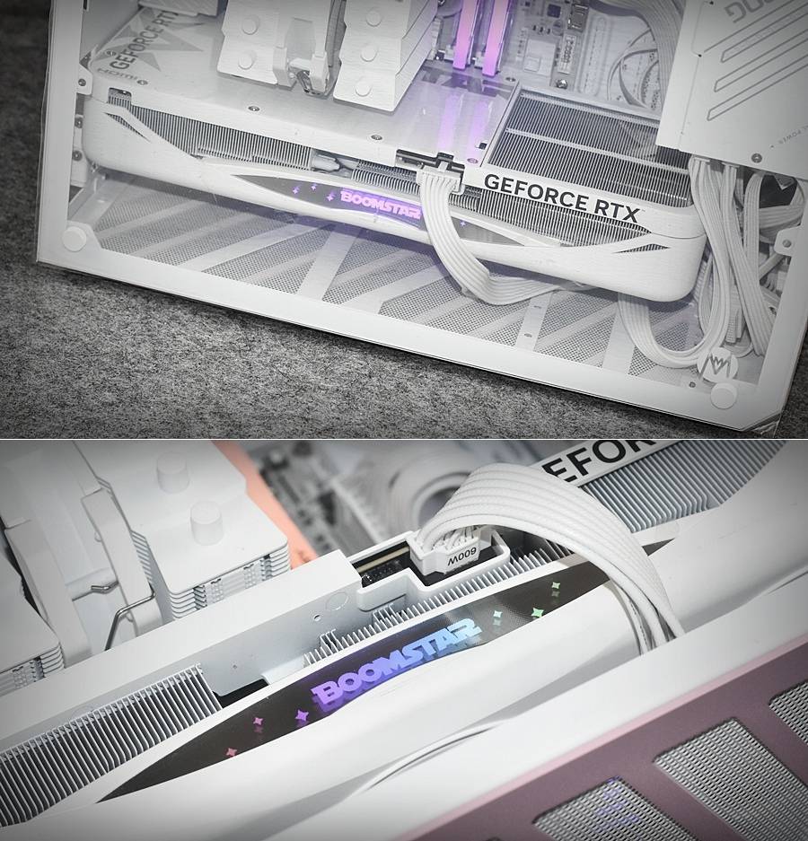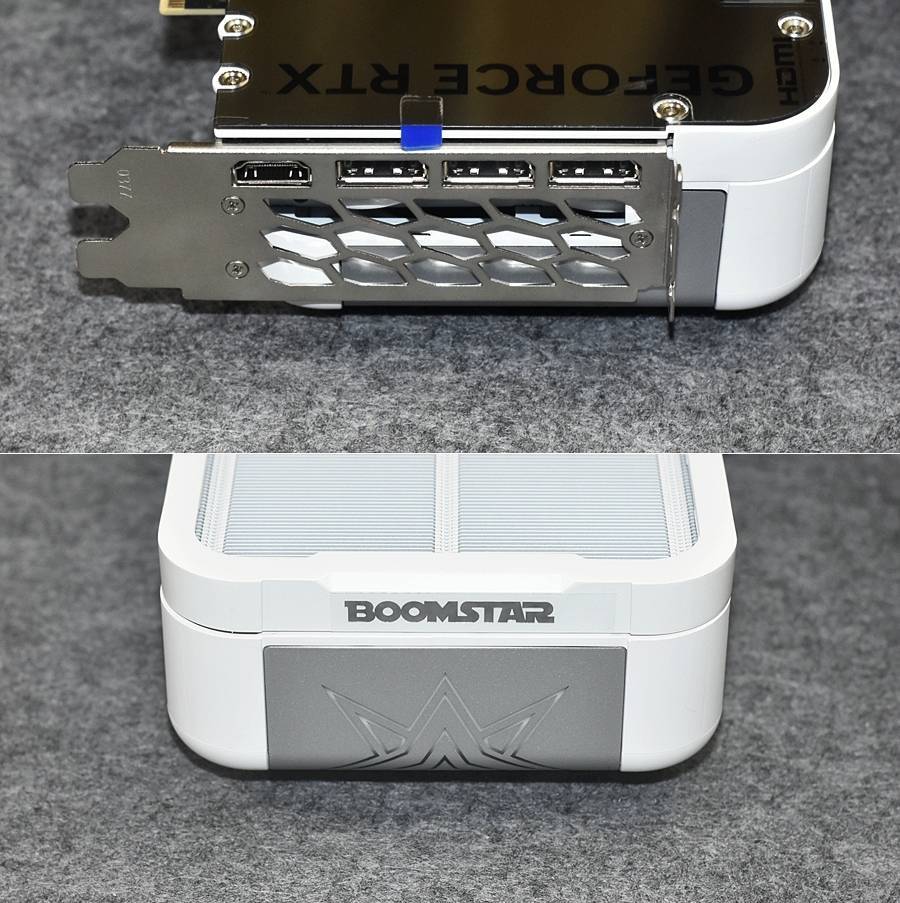 散热马甲中段部分及顶部BOOMSTAR标识灯效。讲真中段的光效部分让人联想到自家HOF的设计元素,这样的搭配真的略显意外,但是毫无违和感,甚至非常和谐。