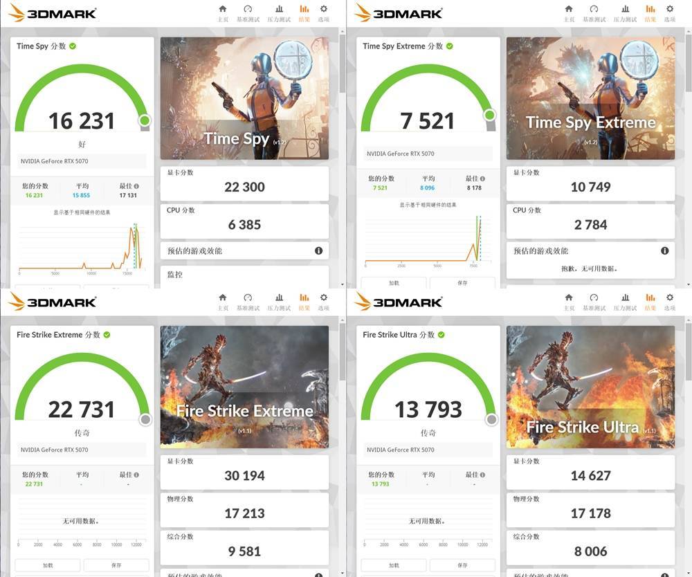Fire Strike Ultra:13793分,显卡分数 14627分,物理分数 17178分,综合分数 8006分。