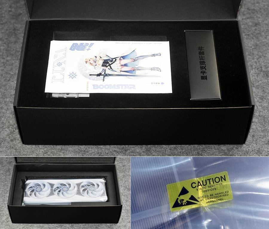 同时显卡本体采取静电袋包裹,封口处贴有CAUTION黄色警告标签,预防静电的同时确保显卡到手为正品国行全新未拆封。