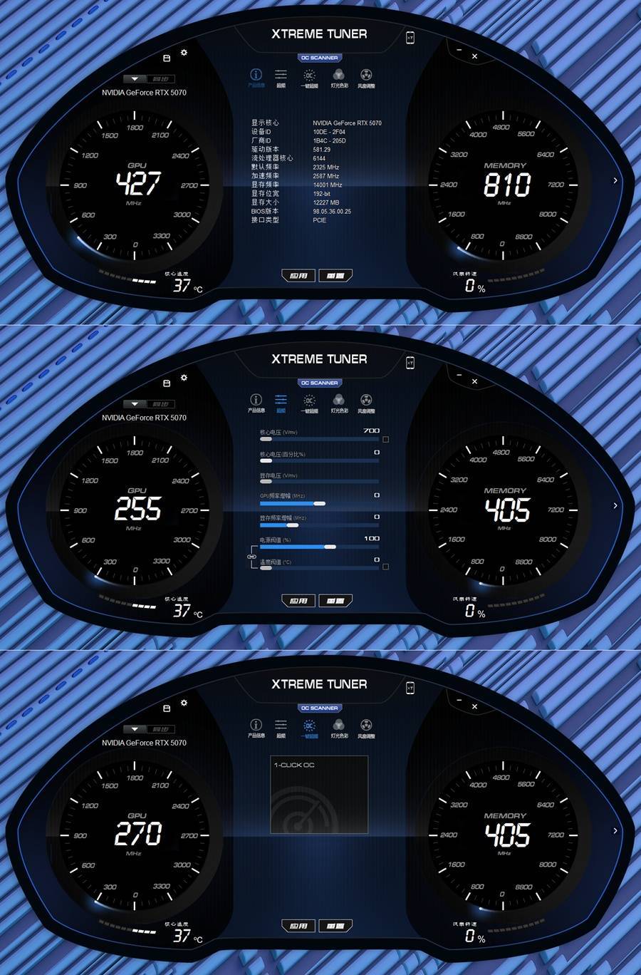 影驰家的全新魔盘Xtreme Tuner更新到了v1.0.7.4,完全支持RTX50系显卡,同时软件交互界面的中文支持度进一步提升,更加本土化。