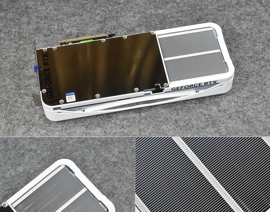 拆卸掉上盖后,散热鳍片袒露了出来。通过肉眼可以看到采用大面积阵列饱和式鳍片,同时鳍片喷涂为白色,影驰工程师誓将白色进行到底,细节之处值得肯定!