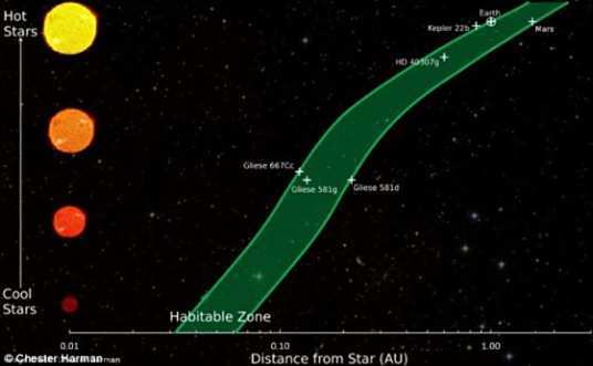 行星距离其恒星不远不近,使得表面温度能允许液态水稳定存在,地球正好位于太阳系的“金发姑娘区”(Goldilocks Zone)。