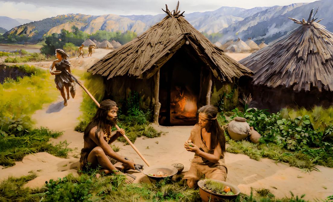 从狩猎、采集社会到农业社会的转变,使得人类可以定居下来, 定居带来了食物盈余,使得一部分人可以脱离食物生产,成为工匠、祭司、士兵、统治者,从而促成了社会分工、城市、文化和复杂社会结构的出现。