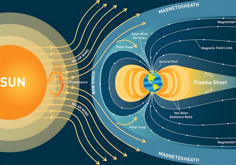 地球拥有一个由熔融铁核对流产生的强大磁场(磁层)。这个磁场偏转了来自太阳风(带电粒子流)和宇宙射线的大部分高能粒子,保护了大气层不被剥离,并保护地表生命免受辐射伤害。
