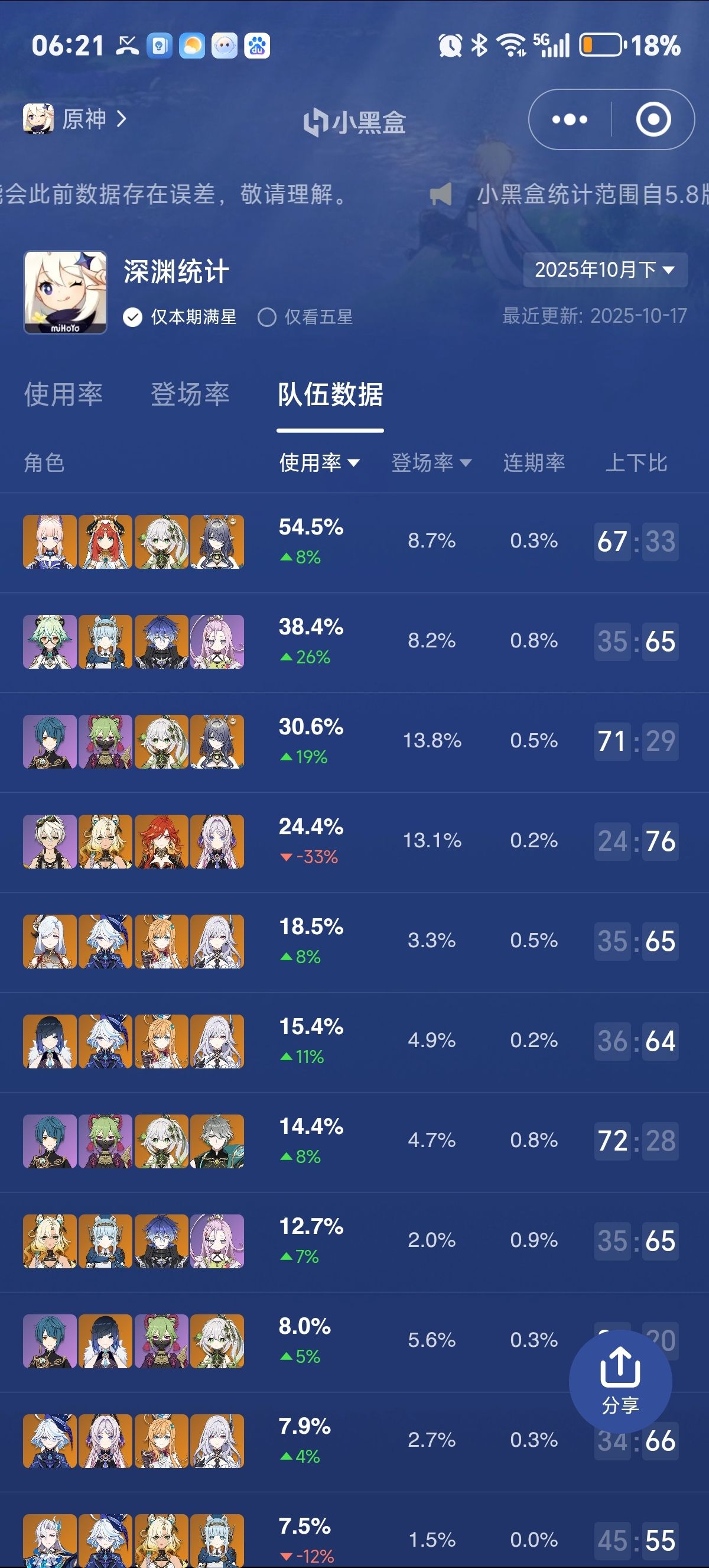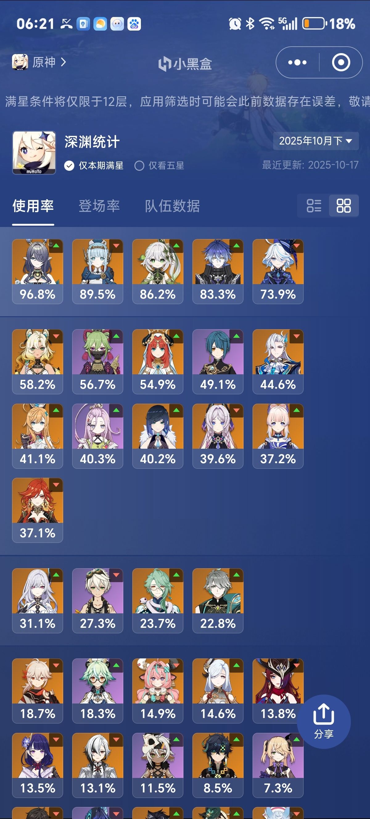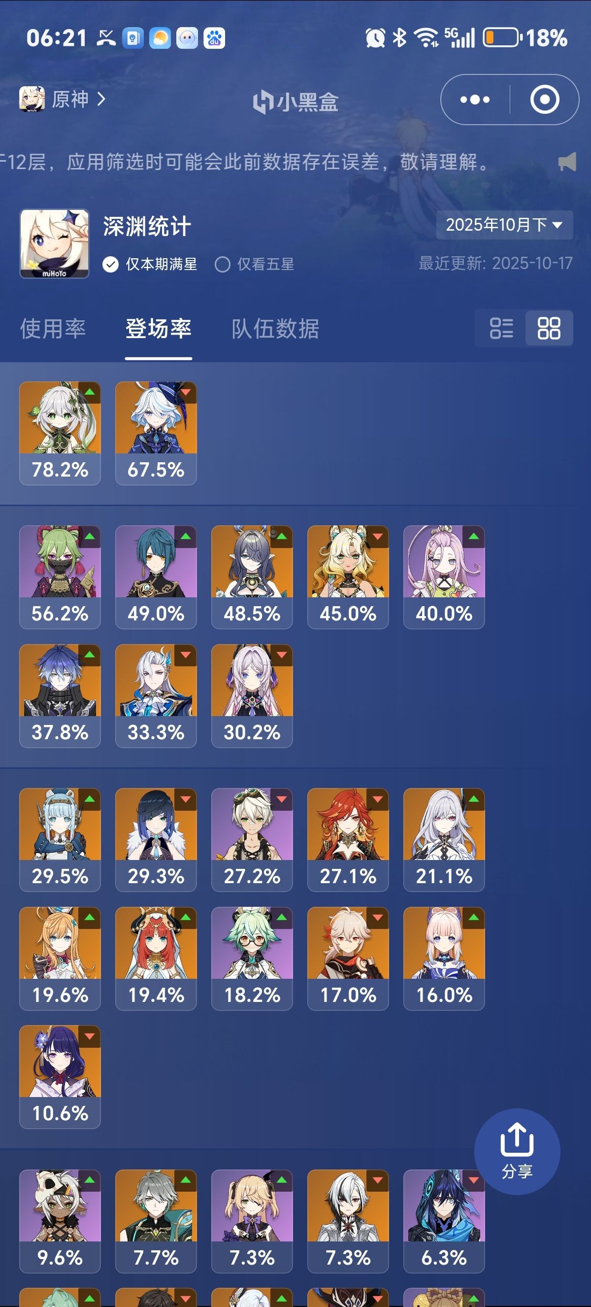 2.当期up角色,使用率一定高居榜首,但登场率就未必。