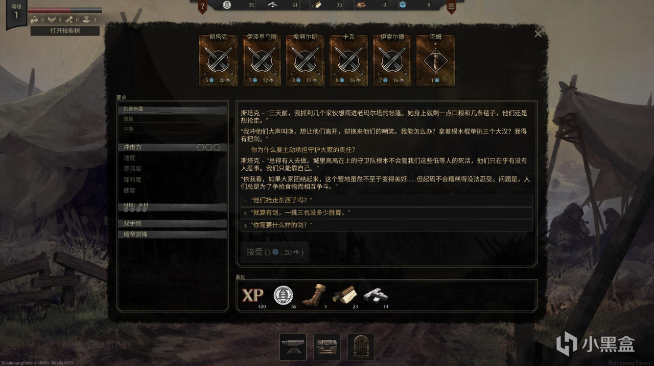 試玩版一共開放了3個職業(騎士、刺客和浪人)和200+道具,各具特色,流派豐富而且製作組更新很勤快。