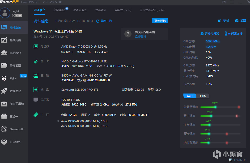 游戏加加完整对局测试,这是在室温20.7摄氏度情况下测试的 37分钟 5E完整对局。