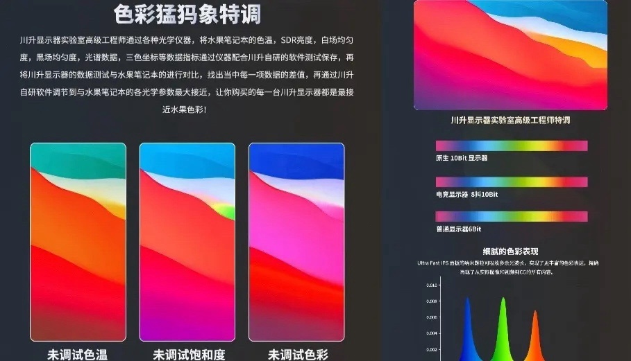 說到這裏就不得不提及川升的獨門祕籍猛獁特調了簡單來說猛獁特調是川升針對CS25A顯示器進行的綜合校調模式。保證了SDR亮度、黑/白場均勻度、色彩精準性、OD電壓和刷新率的匹配度,從而達到每臺機器視覺觀感效果一致。