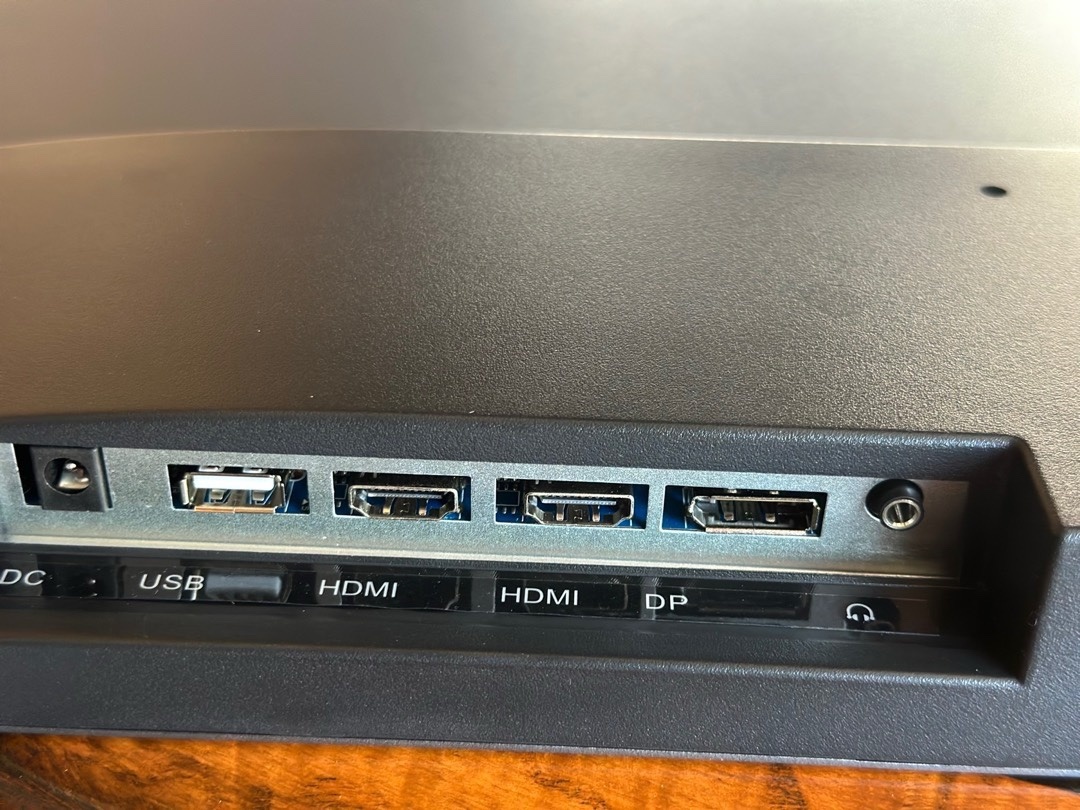 接口方面配備HDMI 2.0×2、DP 1.4、USB-A和音頻輸出,基本滿足多設備連接需求。OSD按鍵採用背部實體按鍵設計,從上至下依次爲信號源/返回、菜單/確認、方向鍵及電源鍵。