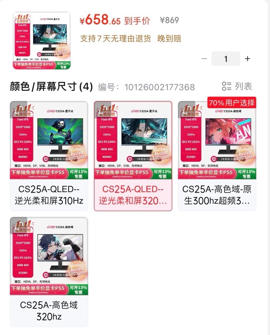 性價比對於各位盒友來說也是值得考慮的一環畢竟錢要用到刀刃上,300HZ的超高刷在性價比方面不必多說對於學生黨而言川升CS25A在700元這個價位來說是無需懷疑的性價比之選。(話說有國補所以便宜不少)