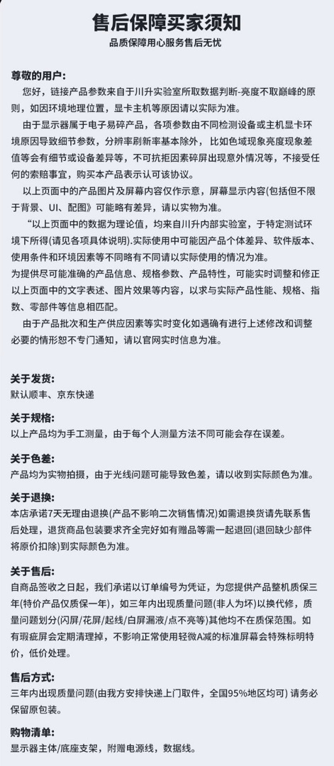 售後保障一直是許多推薦者忽視的一環,但其實往往售後保障是最重要的。就像長生的舍友最近顯示器出現了問題但可惜過了一年質保所以只能自費維修了但川升提供三年質保完全讓你無後顧之憂這點也是我選擇川升的一個重要原因。(畢竟誰也不能保證哪天會出現意外故障)