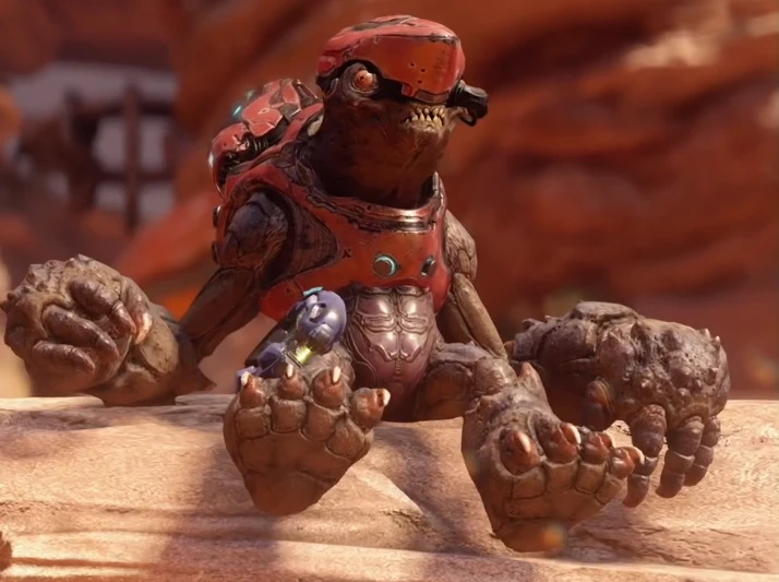 迪姆基·霍塔伊由約瑟夫·斯塔頓配音,這位演員曾爲BUNGIE時期所有《光環》作品中的野豬獸配音。而他的名字很可能戲仿了十七世紀文學名著《堂吉訶德》主人公的名字——該作講述一位妄想復興騎士精神、匡扶正義的貴族。迪姆基那些異於常人的獨白,或許正是其名源的靈感所在。