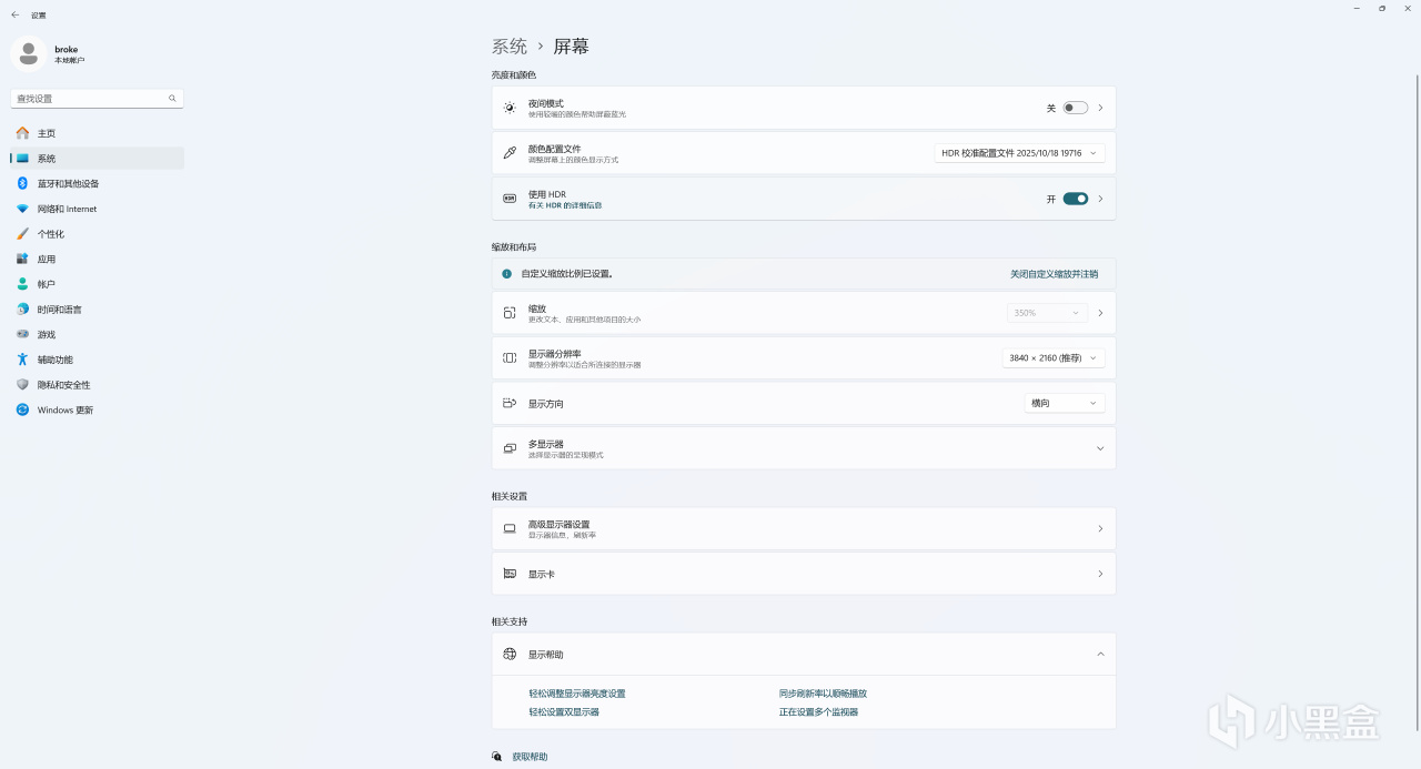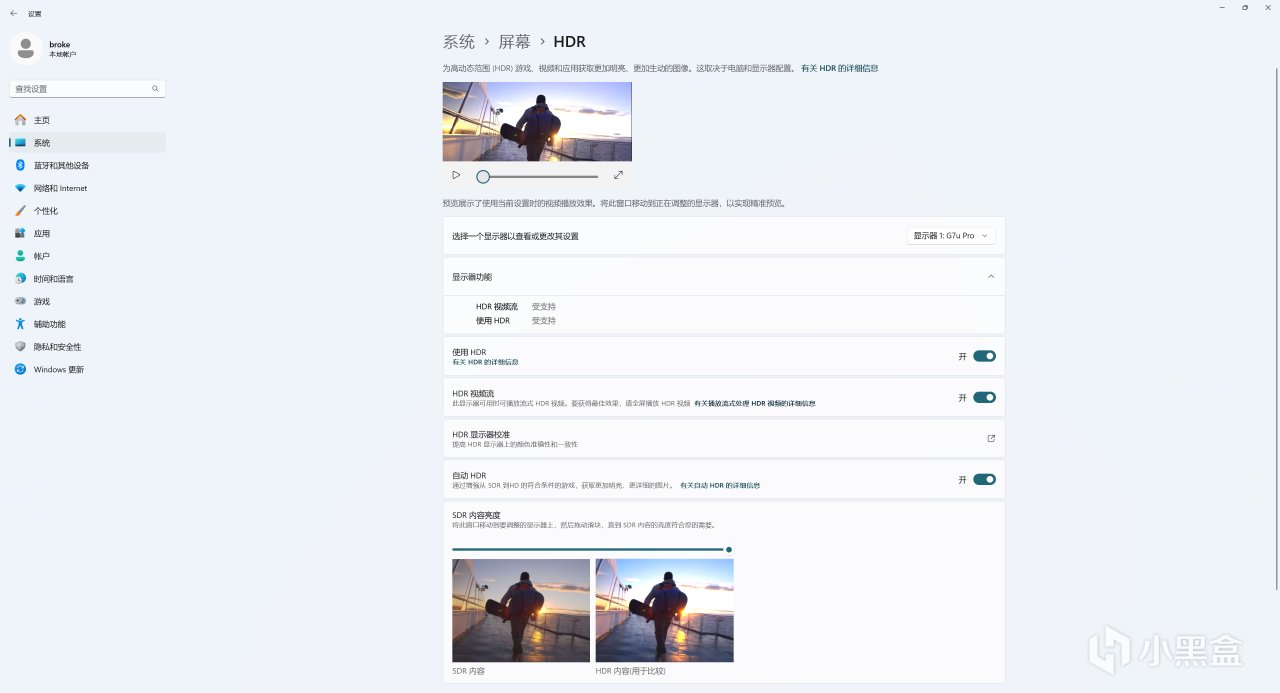 不过HDR可不能乱开,每个人的显示器亮度都不一样,系统的HDR是无法识别你显示器的参数的,什么都不设置的话打开可能和不开基本没什么区别。
