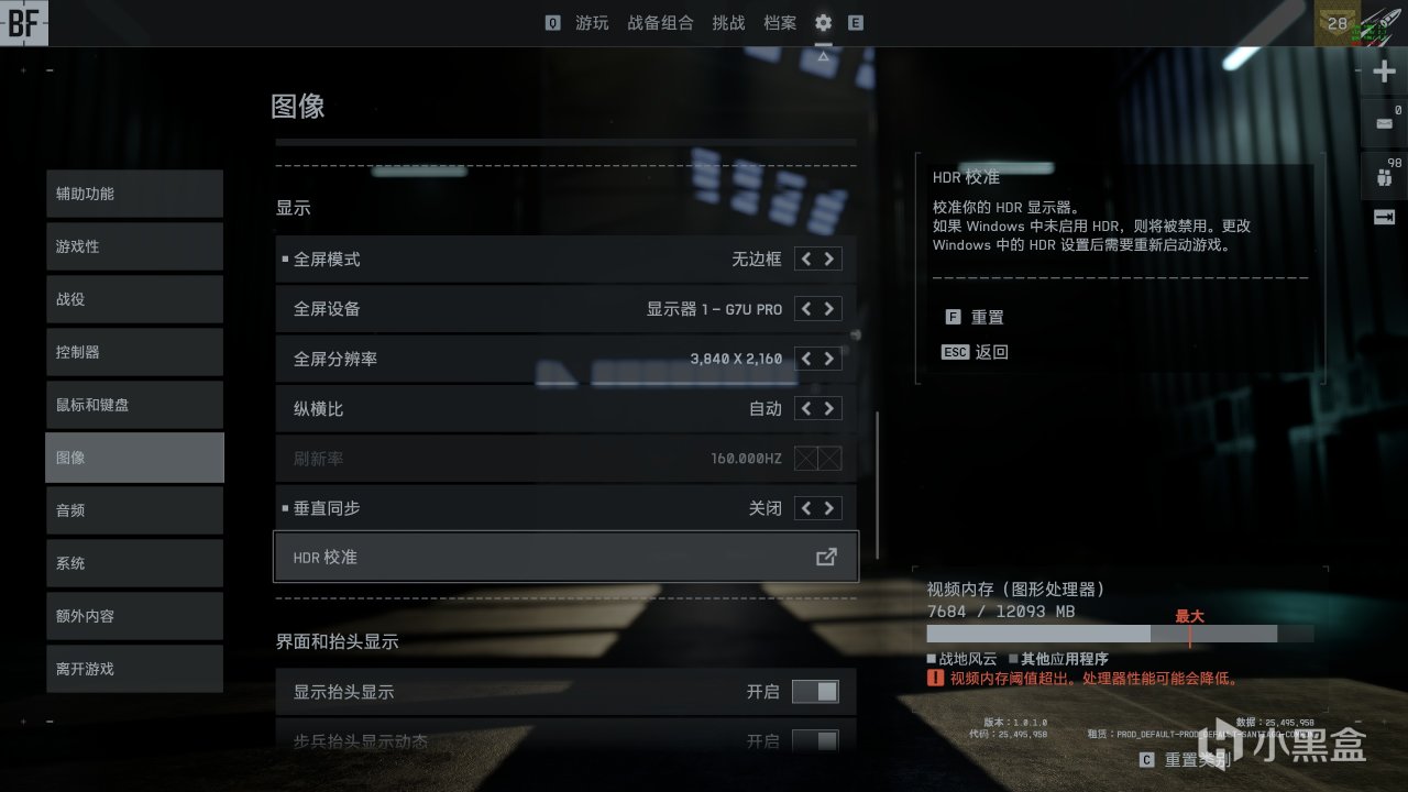 不过这只完成了一半,还需要进入游戏进行最后的设置,而且目前HDR设置有bug,在局外设置是看不见反馈的,一定要进入一局游戏后再设置。