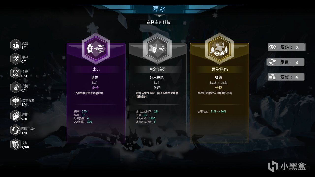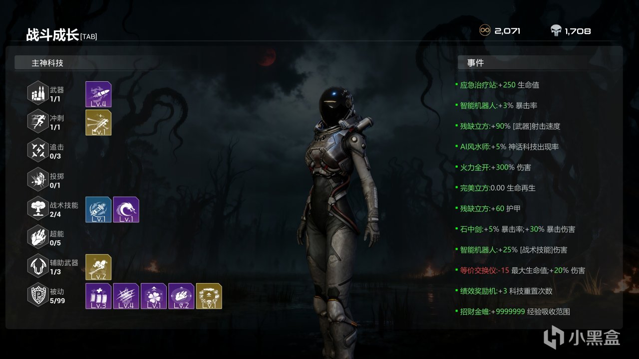 局內每次升級的天賦(主神科技)也是傷害的主要來源,遊戲已提前將天賦區分多個派系,寒冰/火焰/槍匠等等....