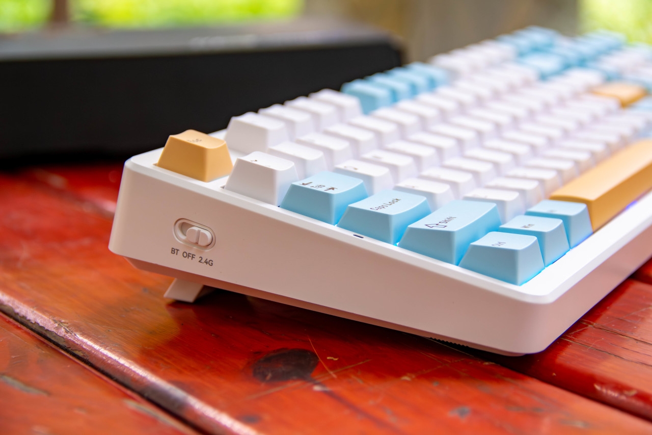 三模切換滑塊沒有放在背後,而是丟在左側,不需要切個模式還要把鍵盤翻過來,方便切換模式。