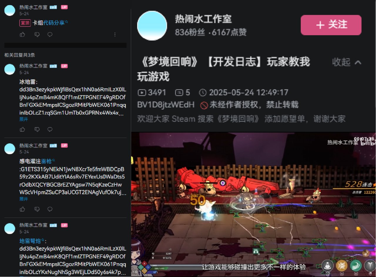 从游戏公司社畜到单人开发独游,从2024年2月到2025年10月,孤雪一年半的时间手搓出了试玩《梦境回响》demo。点开制作人的B站主页,发现他在2023年还做过《战舰世界》的游戏解说。