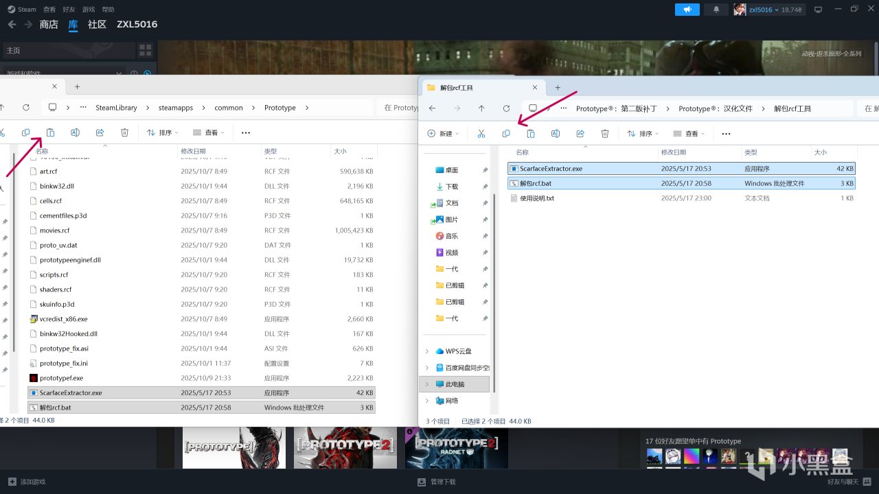 第五步:复制解包rcf工具里的两个文件,粘贴至游戏的安装目录里。