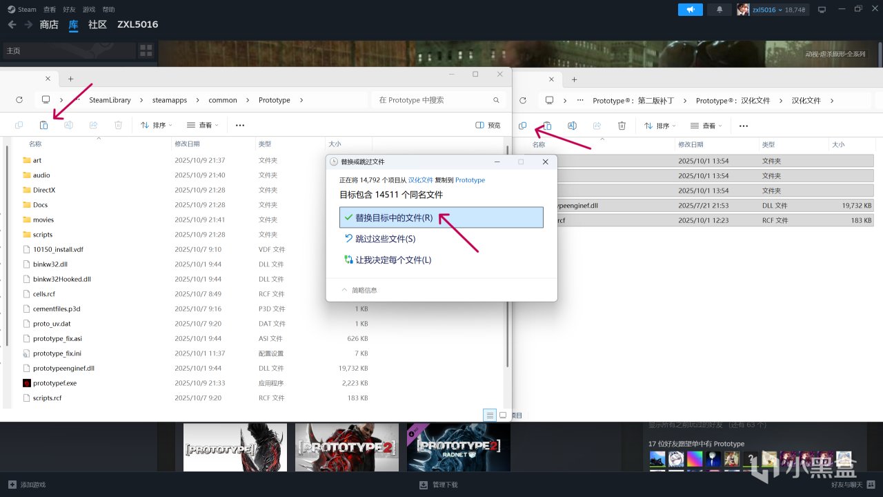 第八步:将所有汉化文件复制后,粘贴至游戏安装目录里进行替换,总共14511项同名文件。