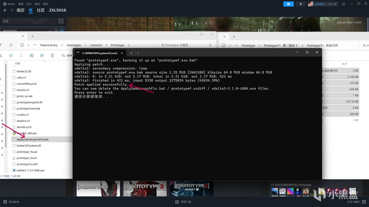第二步:双击.bat工具,看到Patch applied successfully(应用成功)即可。