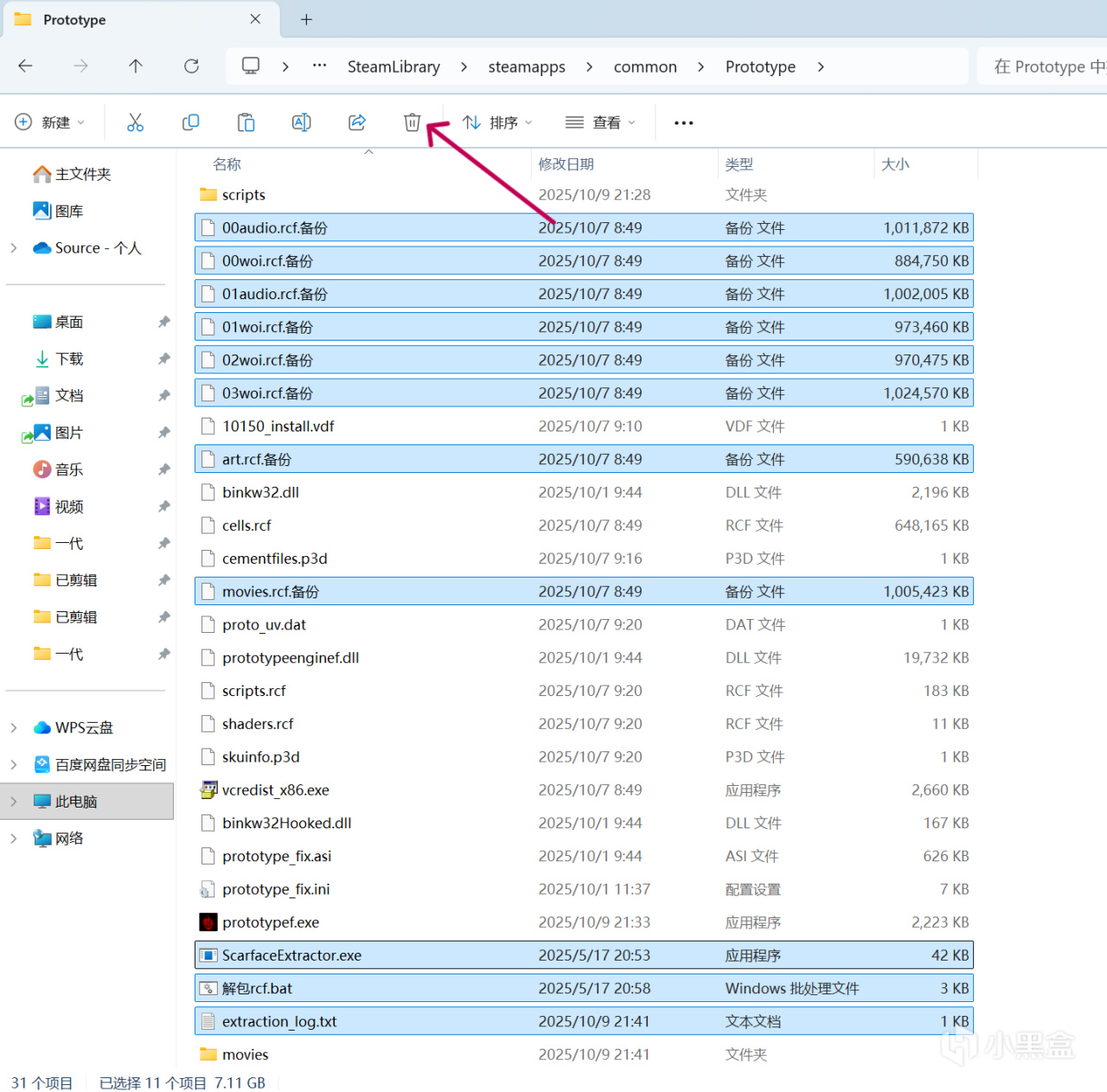 第七步:删除备份文件以及其他文件(必须删,不删进不去游戏)。