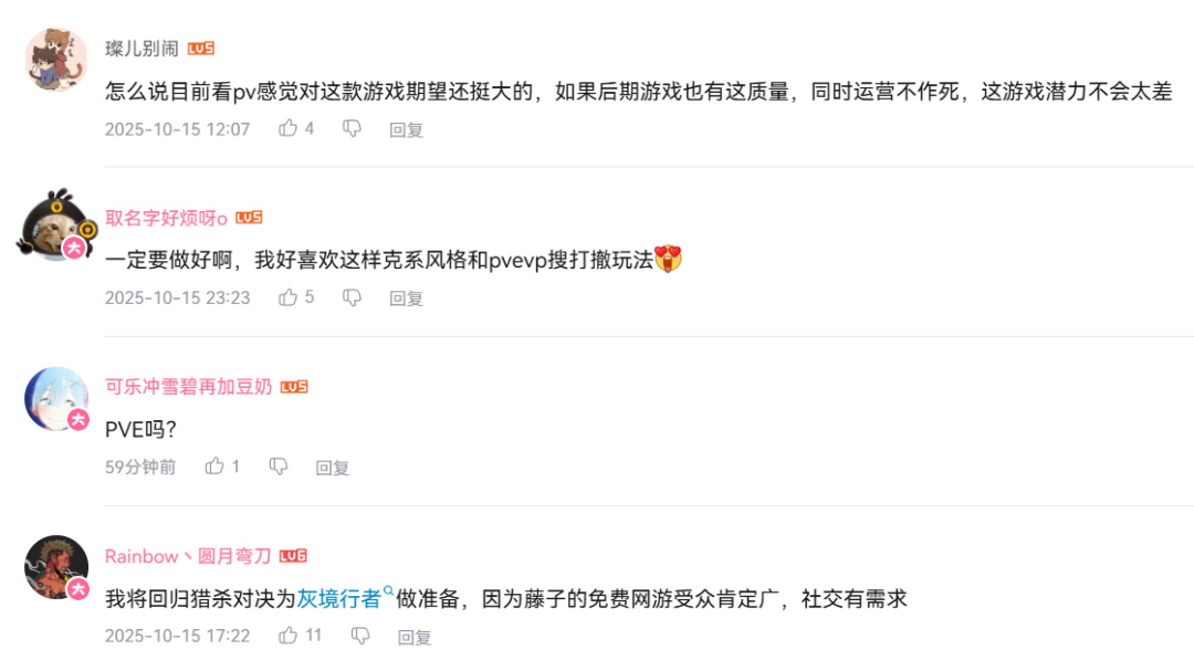 能看出被實機演示吸引的玩家有着各不相同的需求,有些還是《獵殺對決》的老玩家