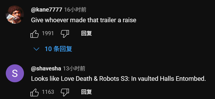 我個人也比較喜歡這次的PV,就像熱評第二中所說的那樣,很少有遊戲宣傳片能做出《愛,死亡和機器人》的質感,但顯然這個PV是例外。短片高潮閃回的數個巨型怪物讓人對“無限流+微恐”的題材十分遐想,而傳送門開啓又帶來了濃濃的科幻氣質,結尾的香港地圖也恰到好處地彰顯了東方文化色彩,配合上音樂可以說一切都恰到好處。