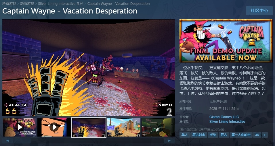 手绘卡通风格的复古快节奏FPS,你可以使用配备各种武器的义肢,也可以选择近战肉搏,释放雷霆之力。无论远程还是近战,手感都非常棒,你还可以像《愤怒的大脚》一样把敌人踹飞,在空中释放飞踢还能让你实现高速移动,在空中使用霰弹枪向下射击可以让你跳的更高。本作有着超爽的快节奏战斗、独特的移动机制、劲爆的配乐,对复古FPS有兴趣的玩家一定要尝试一下。据说它最新的demo由于太过好玩而被Steam禁止参加新品节,我不知道是不是真的,反正我是玩爽了。