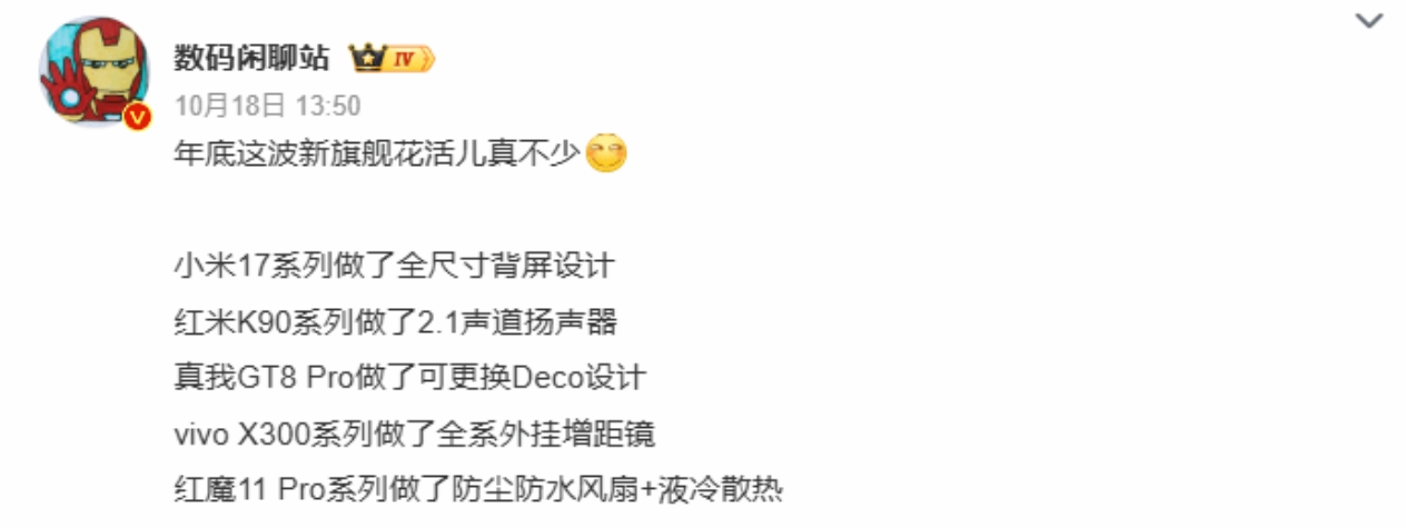 10月19日,REDMI產品經理筍寸通過社交媒體確認,即將於10月23日發佈的K90 Pro Max在相機Deco區域罕見地配備了一個真實的揚聲器,並印有“Sound by Bose”標誌。這一設計解決了手機外放音質與機身空間的傳統矛盾。