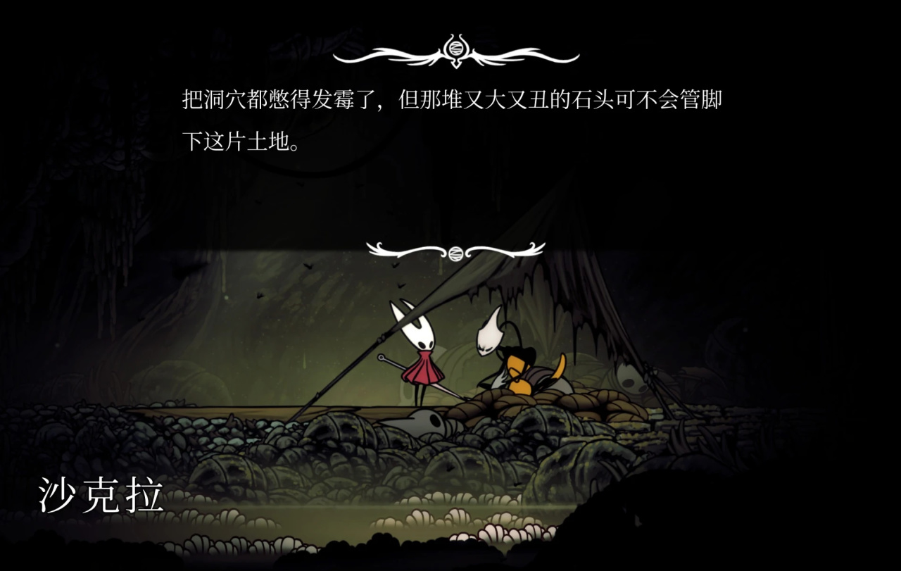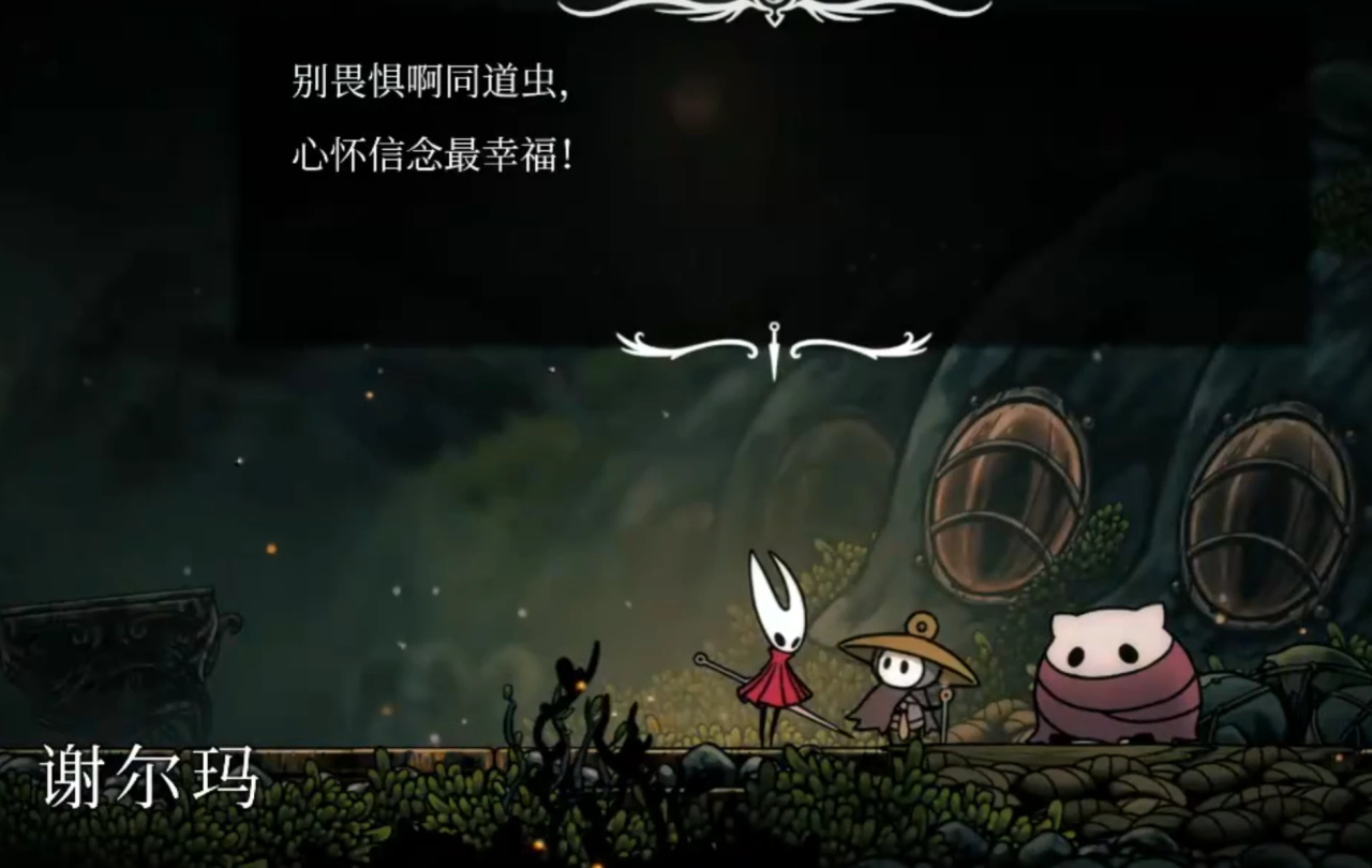 而幸运的谢尔玛看到了真相。谢尔玛这个角色,除了魔性的歌声,乐观的态度,Team Cherry设置这样一位角色在游戏中,也是为了去书写一个虔诚的虫子→发现真相→道心破碎→重塑自我的过程。它从一个盲目相信神的虫子,终于成长为了大家的主心骨。
