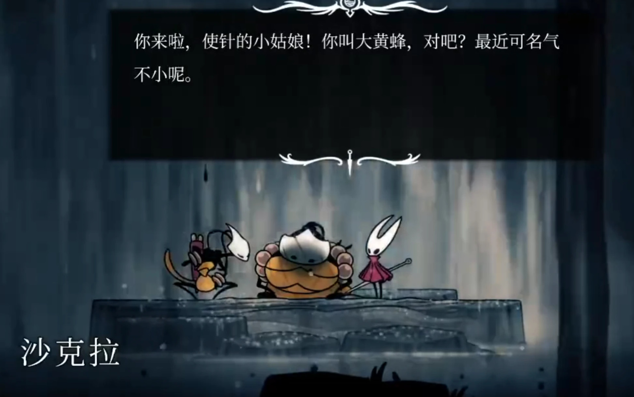 在此时,沙克拉已经听闻了大黄蜂在纺络各个据点助人为乐,以及那些清除大型怪物的战绩,也从最初戏谑地称她为“挥针的小姑娘”,变更为“挥针的大黄蜂”(此处我是看B站UP对翻译错误校准的视频得知,所以乱翻译真害人)。