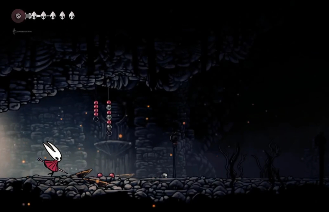 我个人的真实感受,就是前期跑着极其蹩脚的许多跳跳乐,实际上都是Team Cherry为玩家精心设计的,用来熟练某项新能力的教学关。