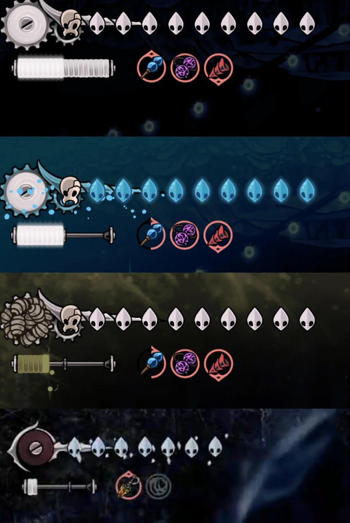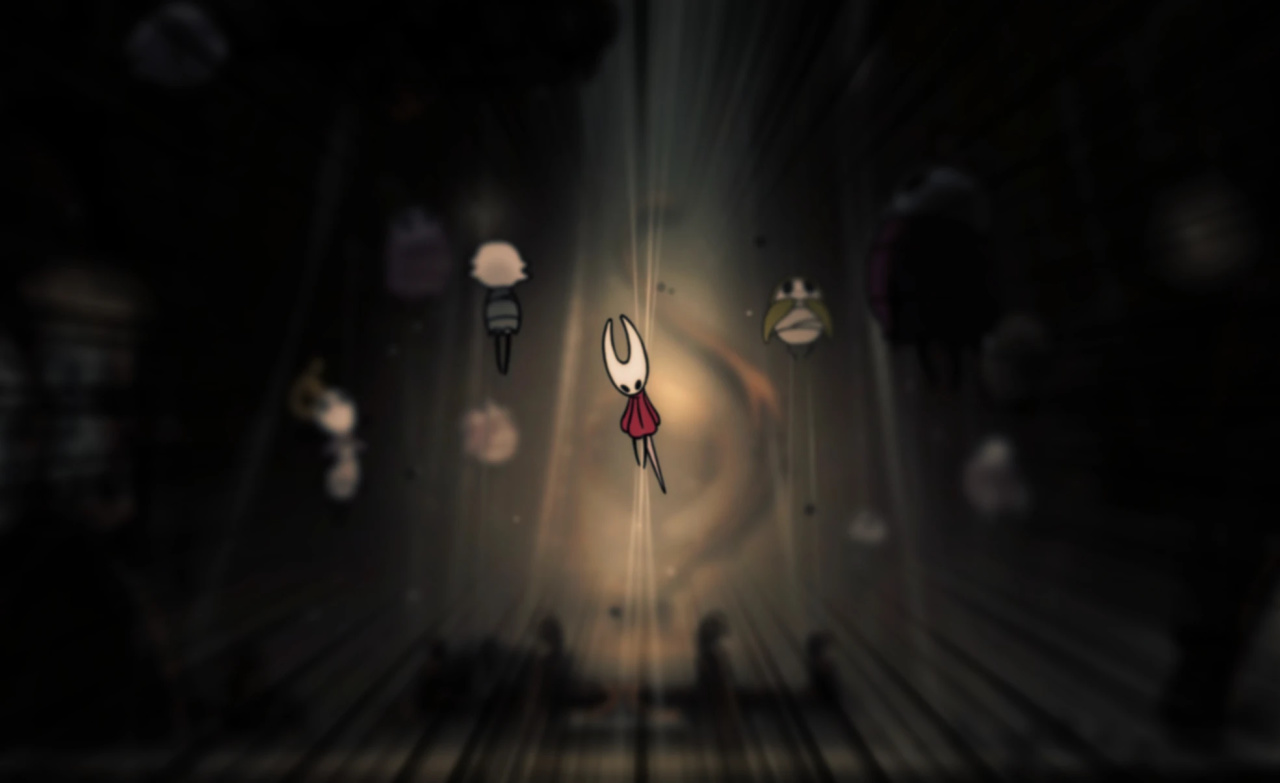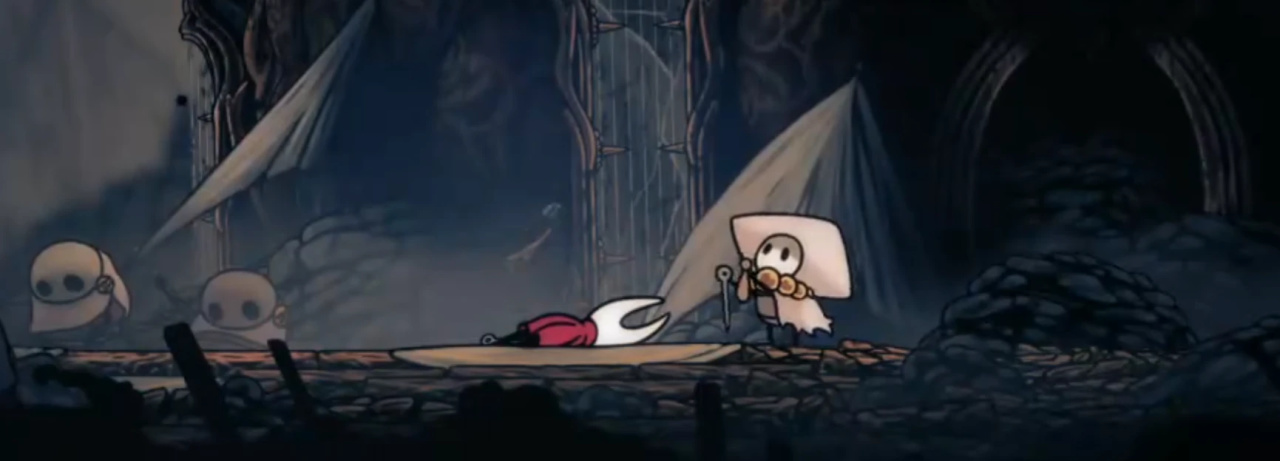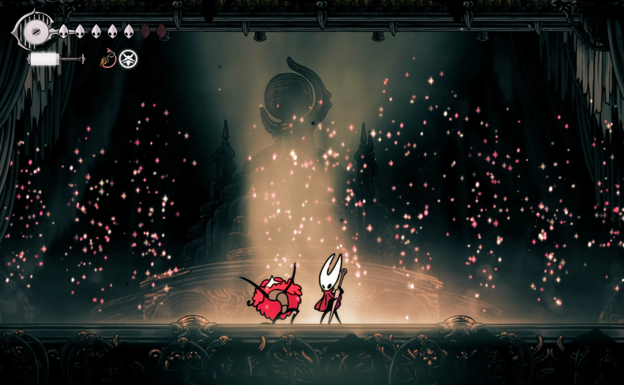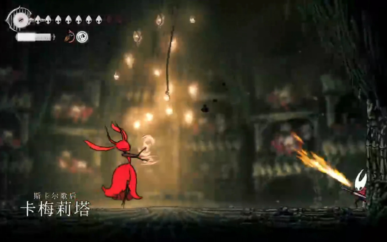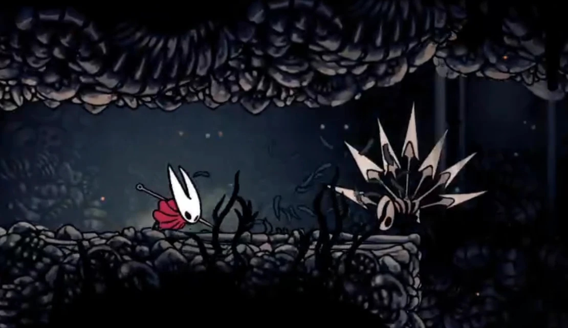 你可以理解为小骑士的花是在他受伤时,被他体内的虚空之力震碎的。而这张动图,其实也描述了另一个事实,就是在《空洞骑士》本体里,拼刀确实比《丝之歌》难……