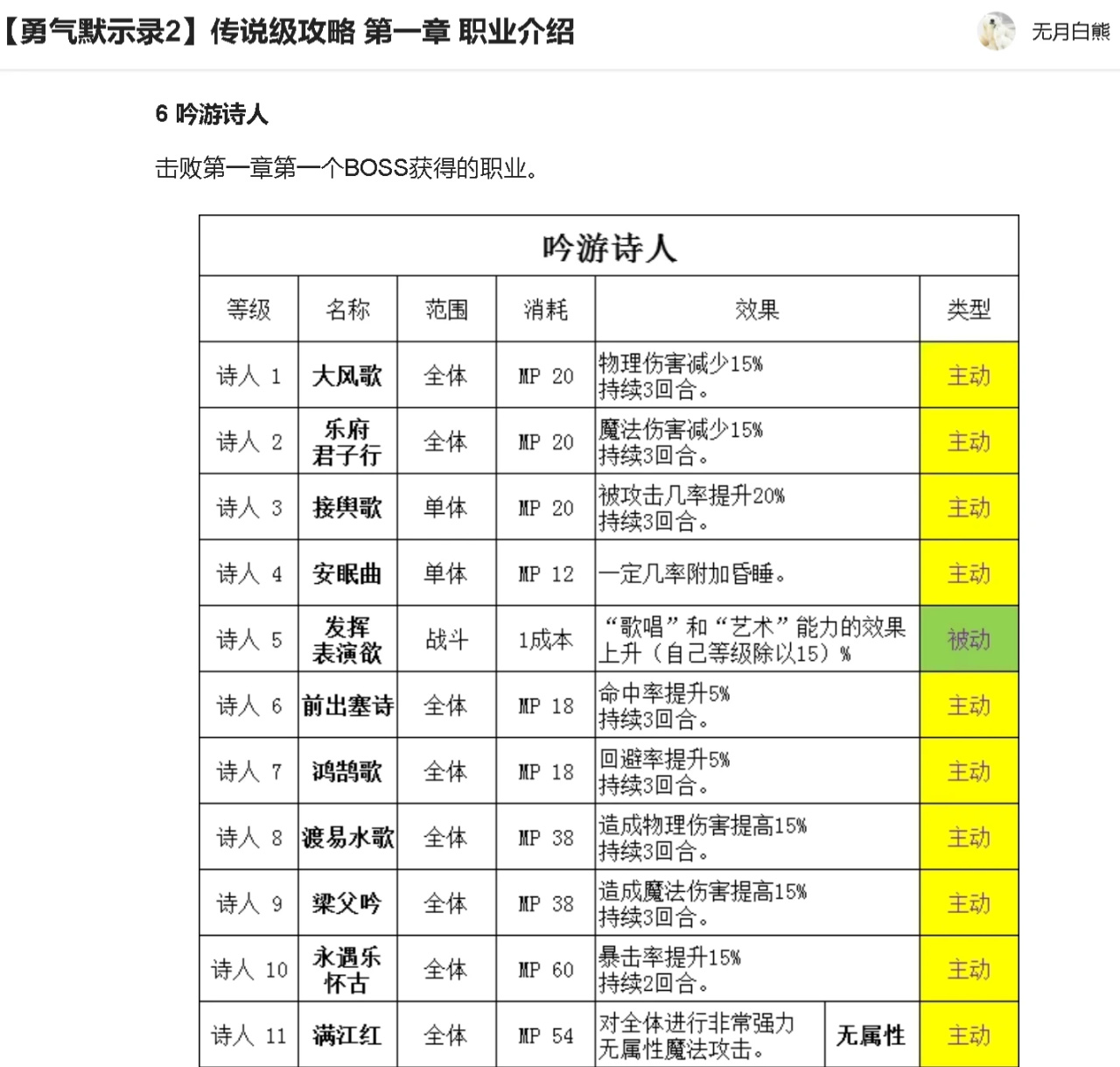 比如我玩的《勇气默示录2》,吟游诗人一个CRPG中会出现的职业,你可以看到它的职业技能名被翻译成了什么鬼样子。