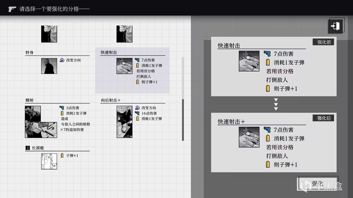 如果本作只是单纯的解谜游戏,那么最终体验上将会往《致命框架》靠拢,玩家只需要找出关卡给予的分镜的最优解,这样反而会大大削减了游戏玩法的意义,所以《杀手寓言》非常大胆地加入了肉鸽玩法,玩家可以自己构建卡组升级自己的卡组,自由度和爽感提高了一个档次,光是初次上手这套玩法流程就让人感觉耳目一新。