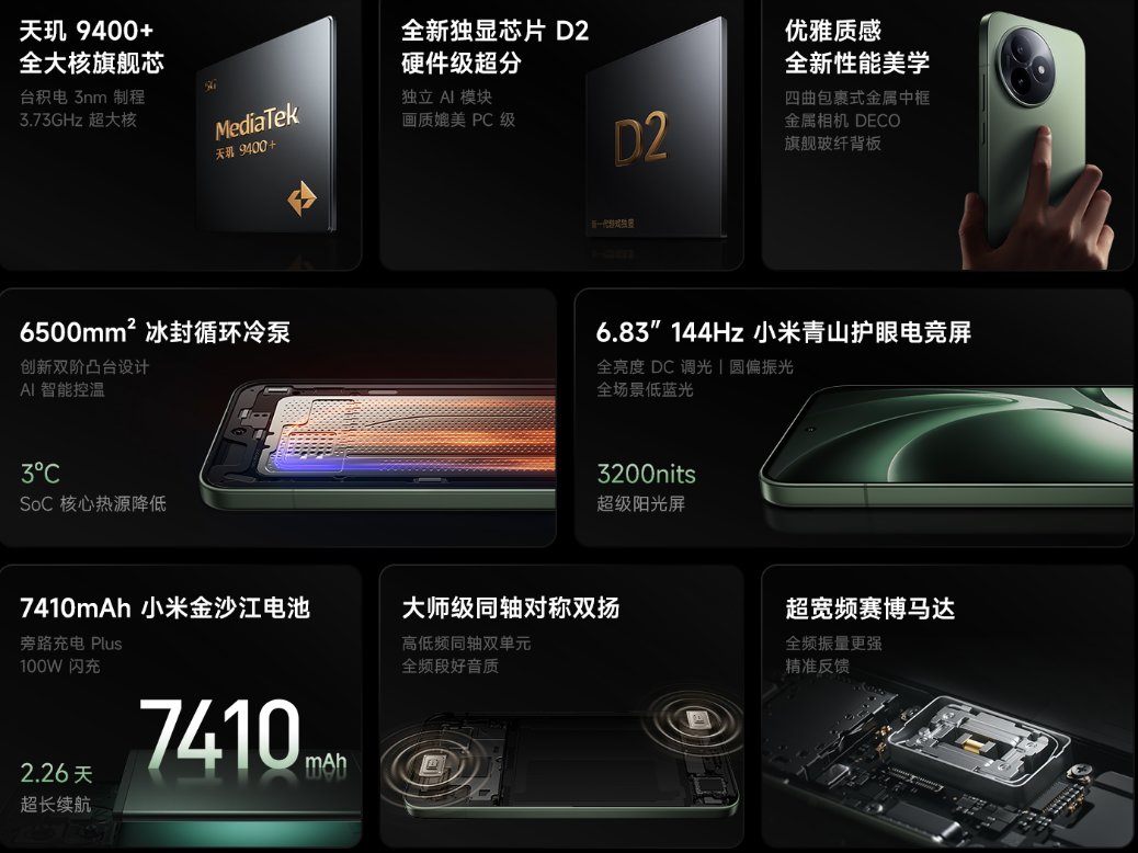 处理器天玑9400+、AI独显芯片D2