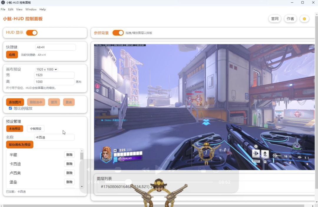我必须承认的是,市面上是有类似功能的软件,但我的小鱿HUD胜在使用简单,你只需要简单的在画布上拖拽,就可以构建出自己专属页面,并且没有任何限制,你可以上传任何图片在画布上,你的电脑你做主。