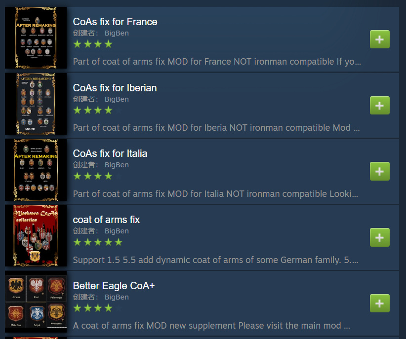 这是由工坊作者BigBen制作的一系列纹章合集。它十分细节,为历史上一些zj冲突严重地区设计了纹章变体,加强西西里岛与伊比利亚地区游玩的沉浸感