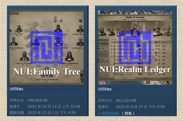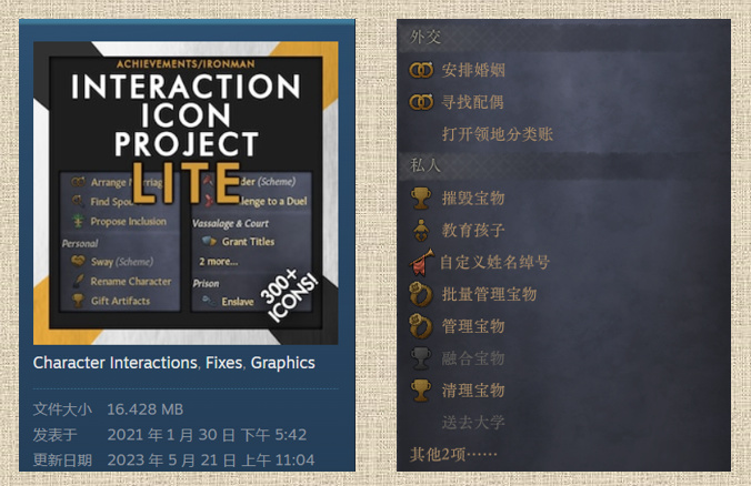 另外两个mod,一个可以便捷的看父系婚姻还是母系婚姻,另外一个给宝物图标左下加了星级标识稀有度