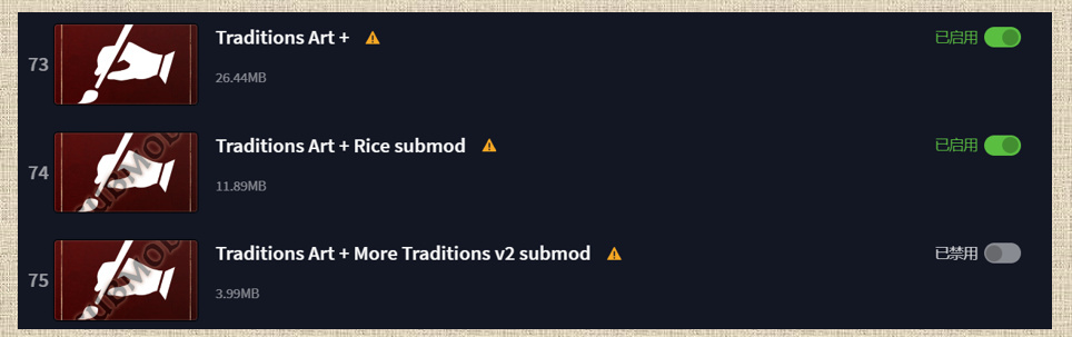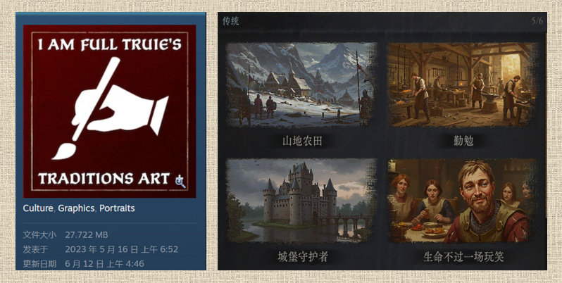 这个mod给文化传统换图标。替换图片很好看,让人仿佛置身在那个时代的人群中