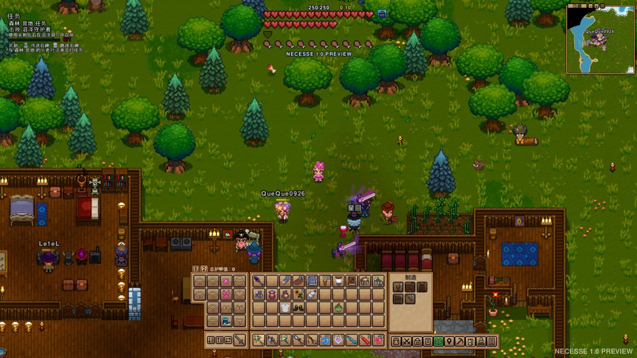至少在体验过单人游玩时NPC只需要少量需求便任劳任怨的高品质体验后,联机时各奔东西猛下地牢不搞基建的队友,似乎除了额外的情绪价值之外和NPC比较简直输输输。